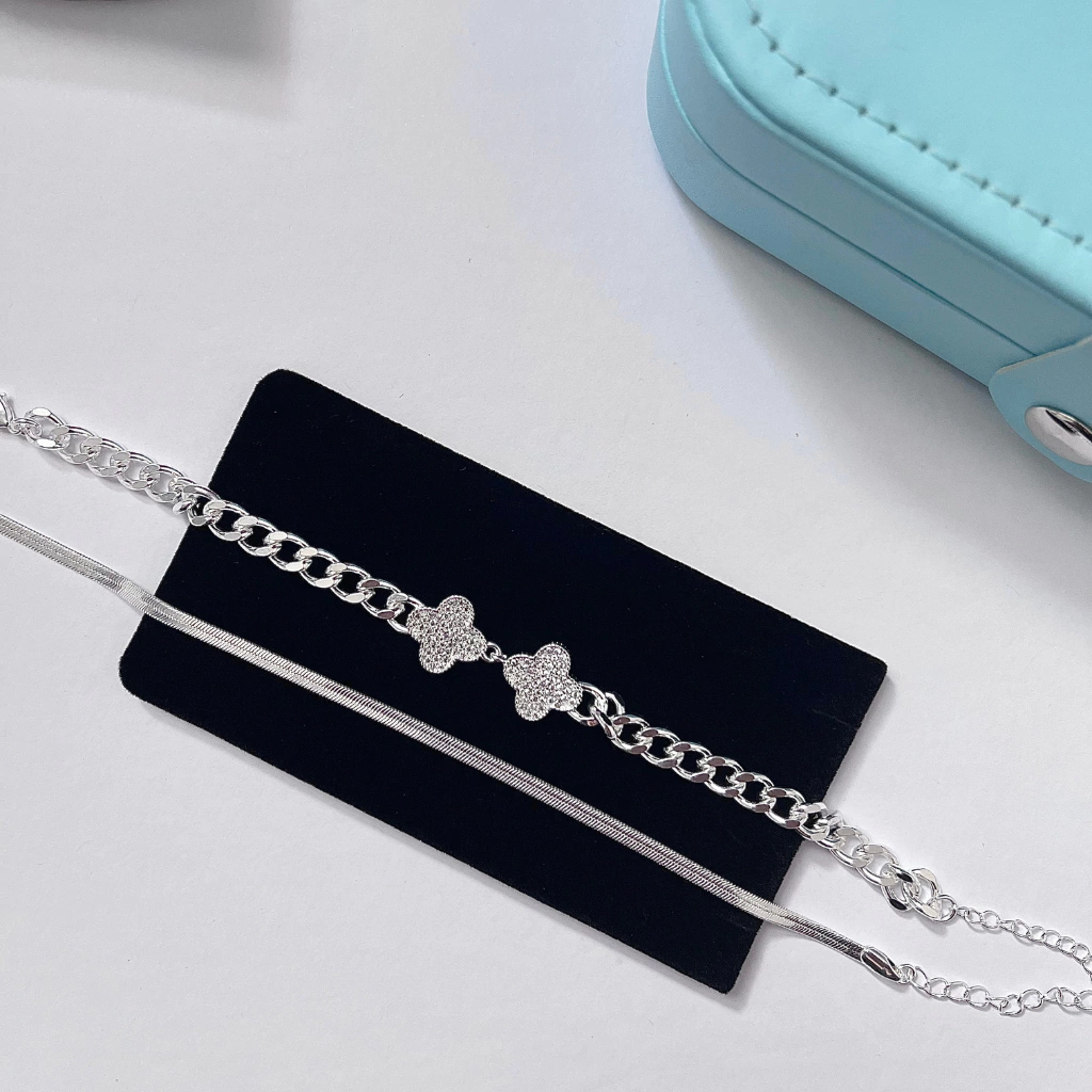 Transforme seu estilo com a Pulseira 2 Trevos Cravejado e sinta-se única e cheia de sorte em cada momento. Adquira já a sua!