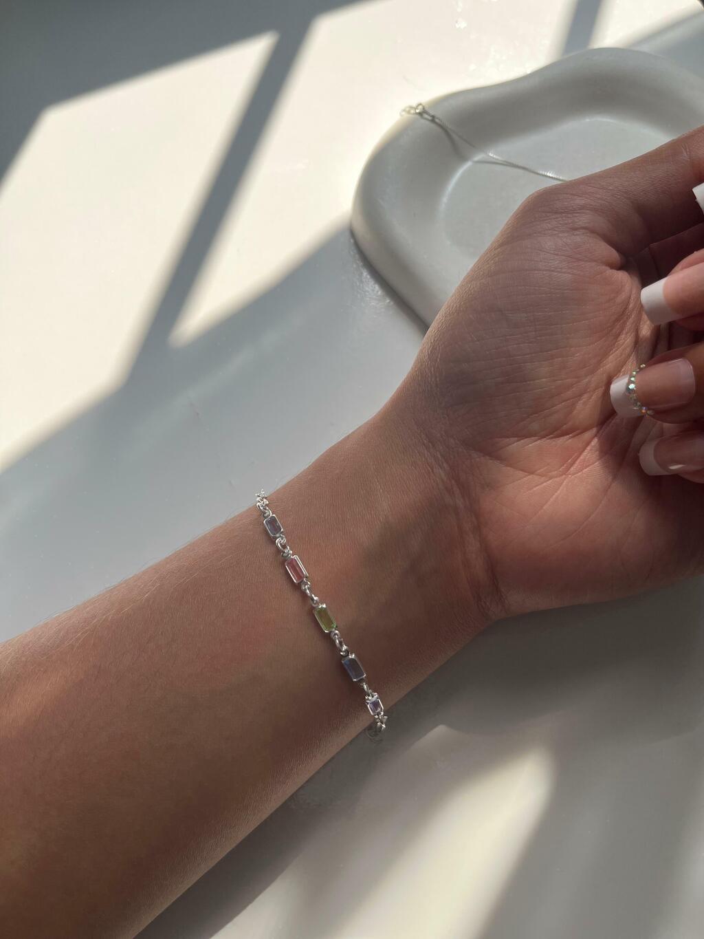 Abrace o estilo vibrante e sofisticado com a deslumbrante Pulseira Retângulos de Prata 925. Com seus retângulos coloridos e design elegante, essa pulseira é perfeita para adicionar um toque de charme a qualquer look, seja para ocasiões casuais ou eventos especiais.